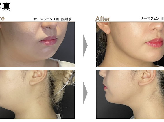 サーマジェンは、RF波(高周波)をお肌の内側に照射する治療です。 フェイスラインのたるみやシワなどを引き締める働きが期待できます。 治療には、RF波(高周波)を真皮層内のコラーゲンや皮下組織にある繊維隔壁及び脂肪組織にアプローチすることが可能です。 高周波の熱により組織の収縮が促されることで、すっきりと美しいフェイスラインや顔痩せを目指します。 またサーマジェンは、痛みや熱さを感じにくい治療です。赤みや腫れなどのダウンタイムにも配慮されています。